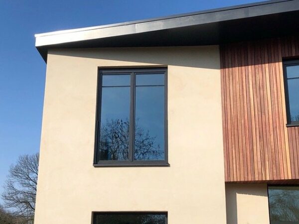 Chantier de construction à Linkebeek (Brabant). Rénovation d’une maison unifamiliale par les entrepreneurs Handy Group et S-Rénovation. Très belle réalisation de NATURA MATER www.naturamater.eu. Isolation extérieure en fibres de paille VESTA ECO Wall et enduit à la chaux UNILIT.