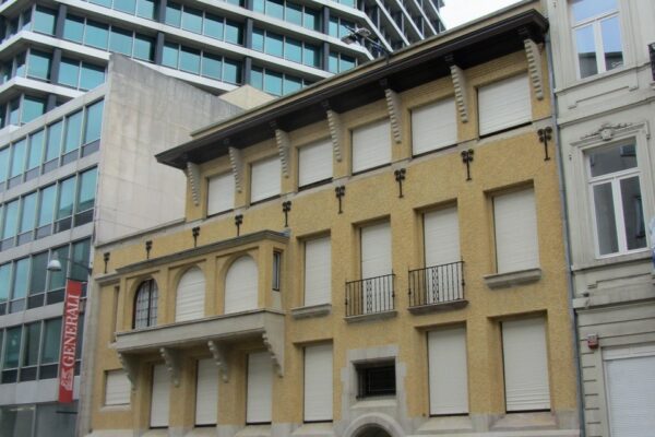 Restauration de la façade, réalisée par Sophie De Ridder – couche de finition avec Keim Granital.